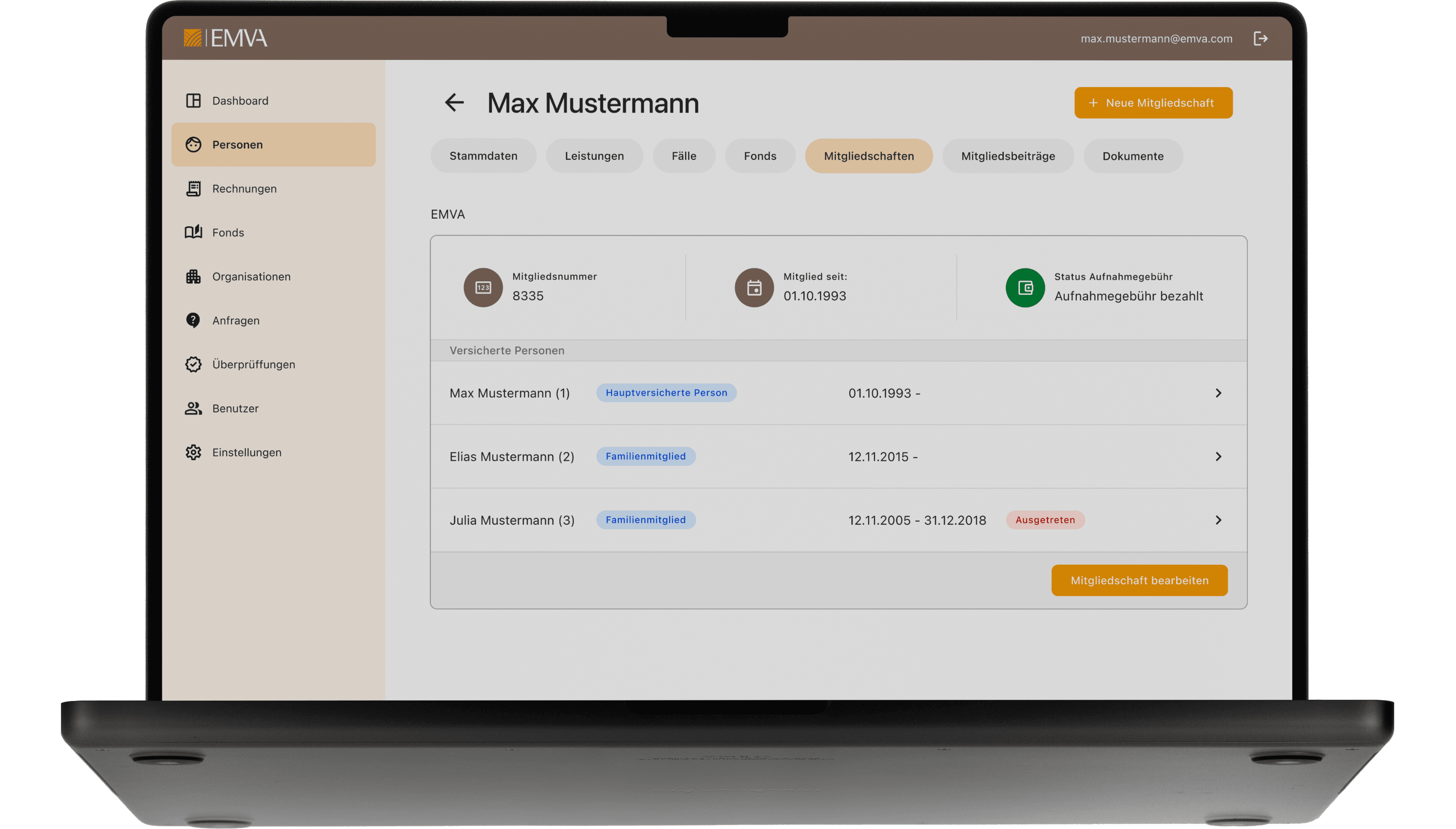 For employees, the platform offers a customized ticket system for processing claims, a clear administration system for enrolments and fund memberships, as well as the option of collecting membership fees via bank payment slip or SEPA direct debit. It also facilitates the execution of payments by cheque or bank transfer. Automated processes such as the sending of emails make the daily work of employees even easier.