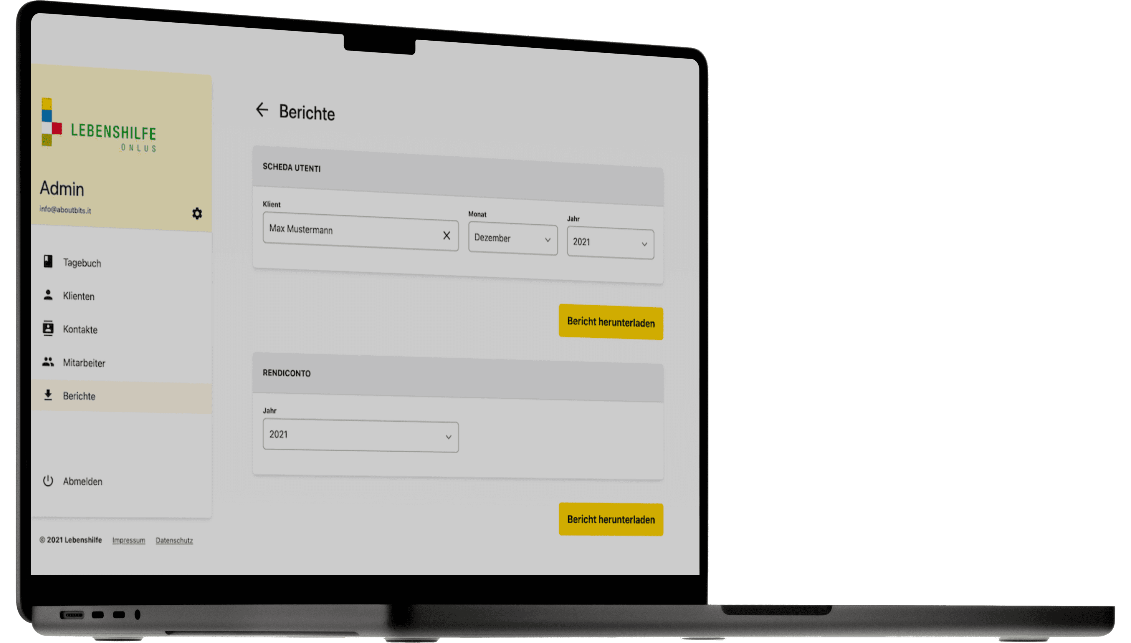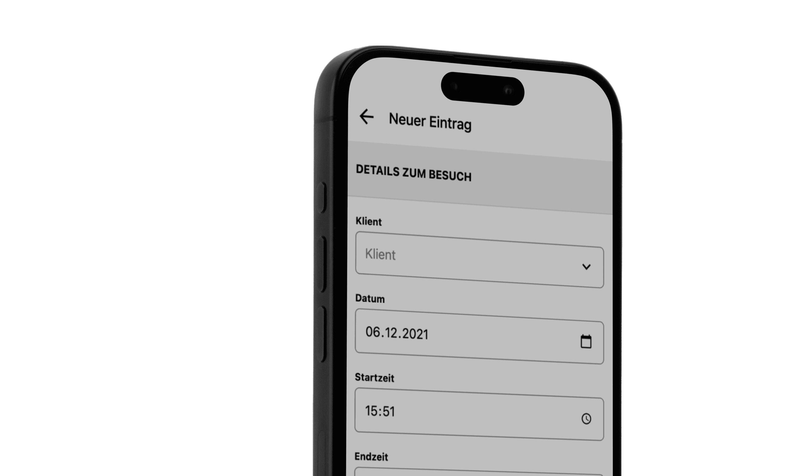 The client management platform is a web portal that enables client visit logs. During the visit, Lebenshilfe staff can log in to the web application using a tablet or mobile phone and fill in the visit log.