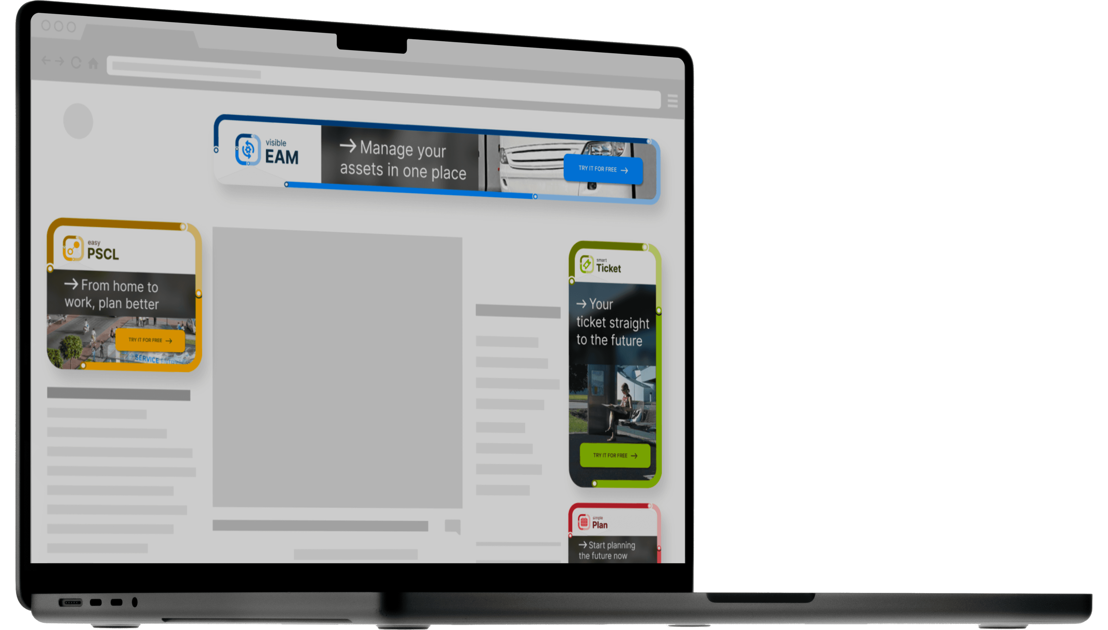 Next Suite - A brand new visual identity for a package of software solutions. The suite consists of four individual products, all of which contribute to efficient and environmentally friendly mobility in urban areas.